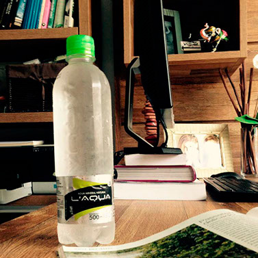 As águas engarrafadas pela L'aqua, são captadas de fontes naturais, sem nenhum contato manual e percorrem, por tubulação de inox, o trajeto das montanhas até a fábrica, por gravidade. É um produto totalmente natural e engarrafado com o mais alto nível tecnológico.